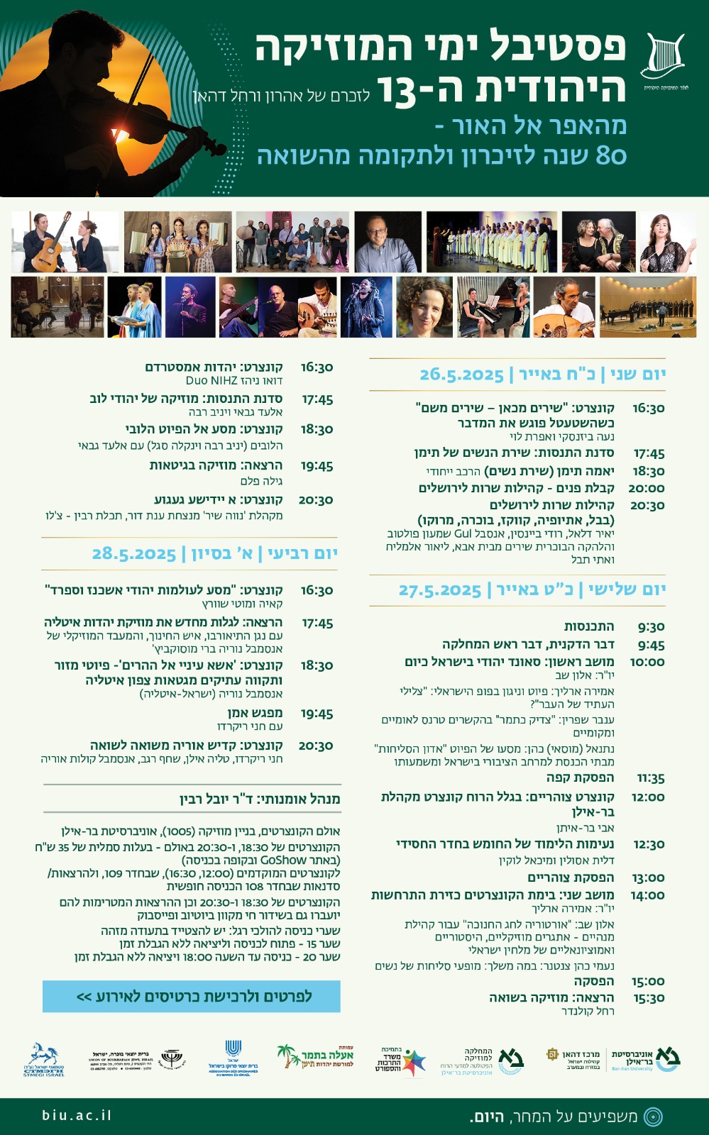 | כולם מוזמנים לפסטיבל 'ימי מוזיקה יהודית' ה-13 עשרות אמנים מוכשרים, קונצרטים, סדנאות, הרצאות - ללא תשלום ובמחיר סמלי
